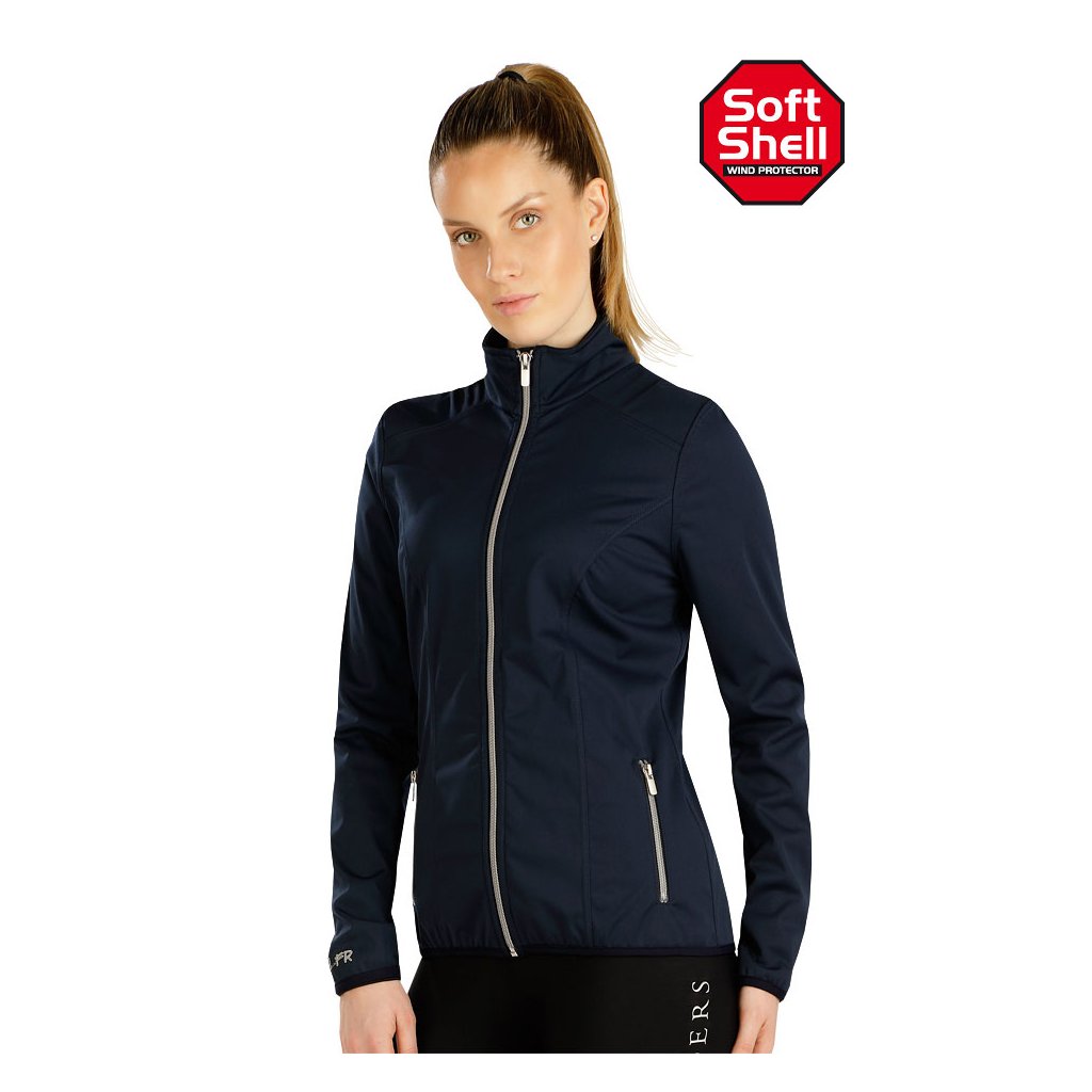 Dámská softshellová bunda v jednoduchém designu. Se stojákem. Zapínání a kapsy na stříbrný zip. Pohodlný materiál je měkký, prodyšný, neprofoukne a odpuzuje vodu. Perfektně padnoucí střih. 100% Polyester + TPU- membrána (18000/12000) 514 tmavě modrá S, M, L, XLDoplňkové parametry