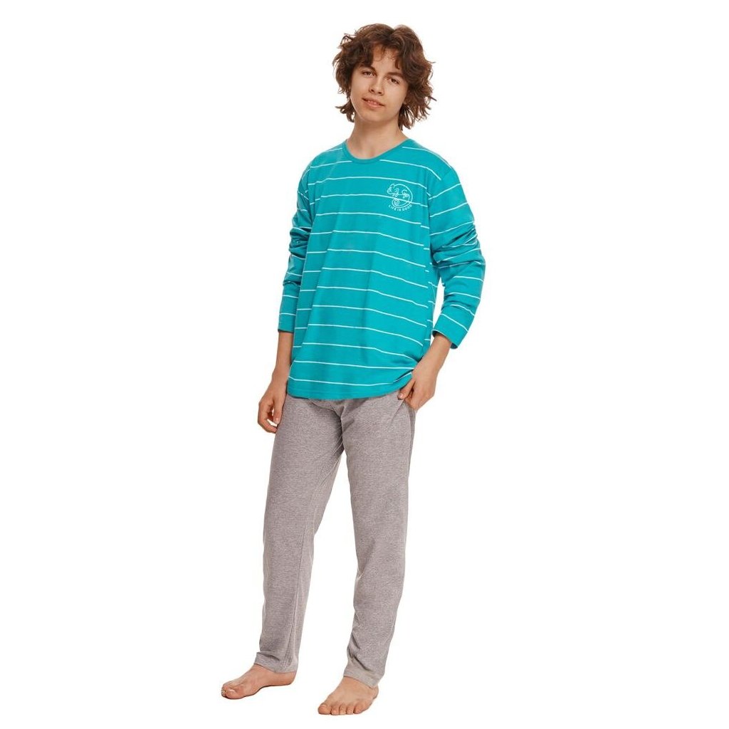 Pyžamo pro chlapce je vyrobené z jemné kvalitní bavlny a má tyrkysovou barvu na pyžamovém tričku.