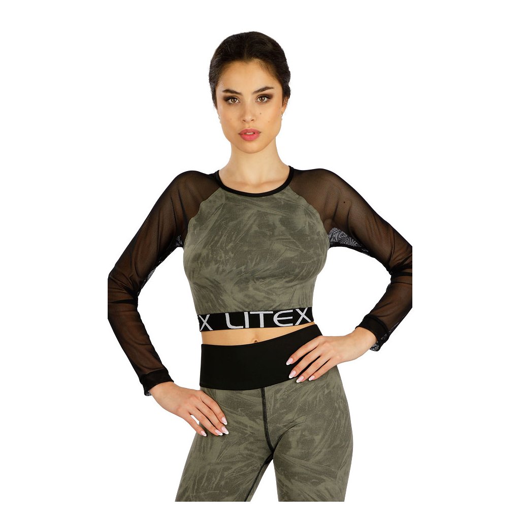 Dlouhý rukáv z průhledného tylu. Pod prsy široká LITEX guma. Originální sportovní kousek, který stylově doladí Váš outfit. 80% Polyamid + 20% Elastan/ 79% Polyamid + 21% Elastan khaki tisk + černá S, M, LDoplňkové parametry