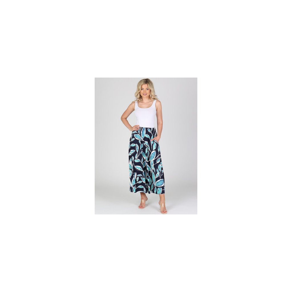 Objevte naši dlouhou sukní S DALMA, která kombinuje pohodlí a styl. Tato letní sukně s originálním potiskem a volným střihem lichotí každé postavě a zajišťuje volnost pohybu – ideální volba pro jarní a letní dny. Sukně je vyrobená z měkké a prodyšné viskózy s příměsí elastanu, takže je nejen stylová, ale i maximálně pohodlná. Elastický pas se přizpůsobí každé postavě a dvě praktické boční kapsy přidávají funkční i módní prvek.