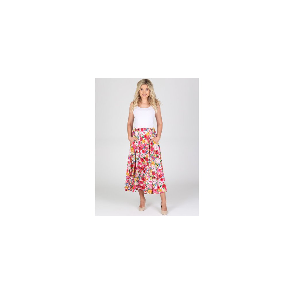 Objevte naši dlouhou sukní S DALMA, která kombinuje pohodlí a styl. Tato letní sukně s originálním potiskem a volným střihem lichotí každé postavě a zajišťuje volnost pohybu – ideální volba pro jarní a letní dny. Sukně je vyrobená z měkké a prodyšné viskózy s příměsí elastanu, takže je nejen stylová, ale i maximálně pohodlná. Elastický pas se přizpůsobí každé postavě a dvě praktické boční kapsy přidávají funkční i módní prvek.