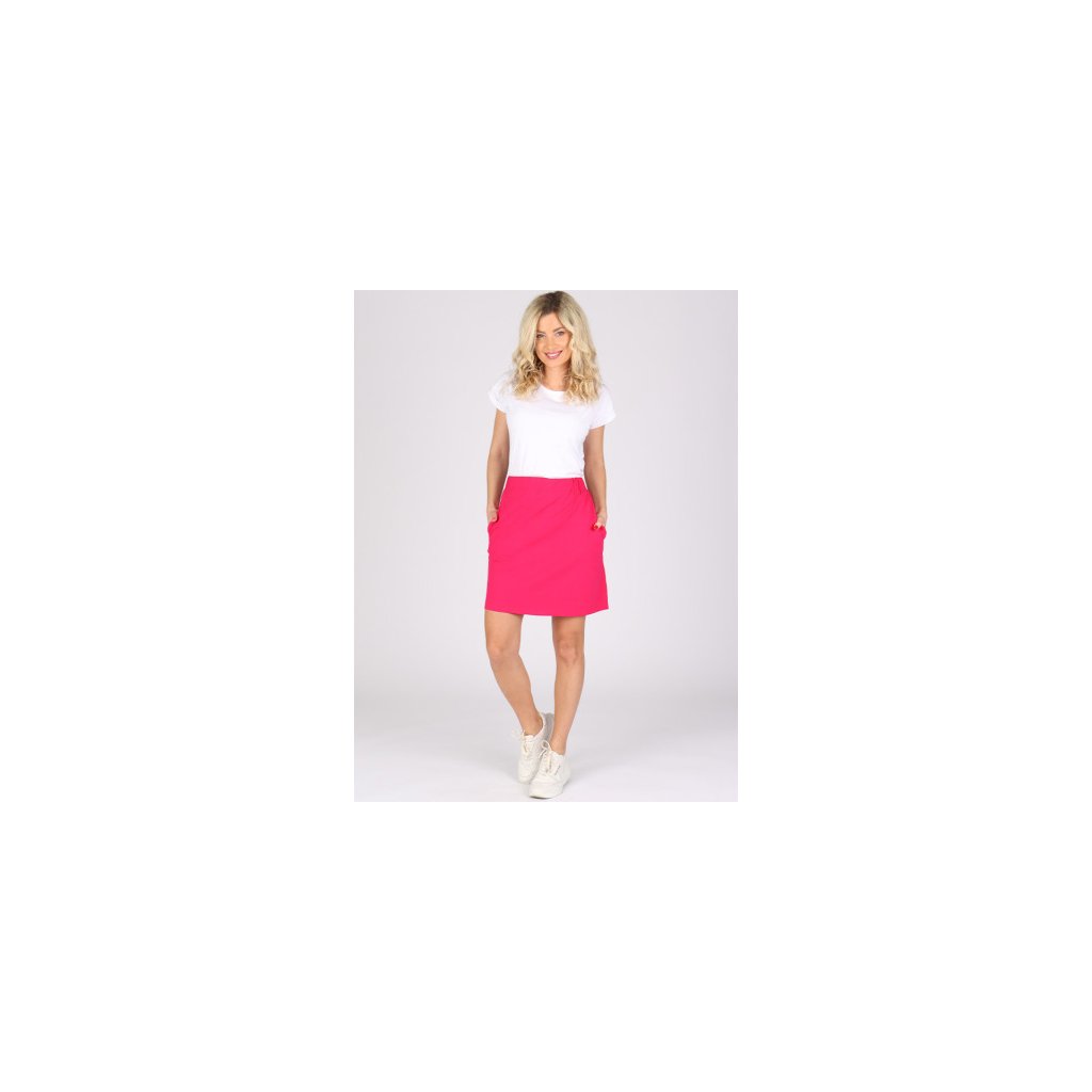 Sukně jsou rovného střihu se dvěma bočními kapsami a v pase mají širší gumu.