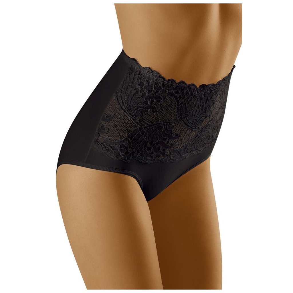 Dámské černé kalhotky s vysokým pasem zdobené krajkou.Doplňkové parametry