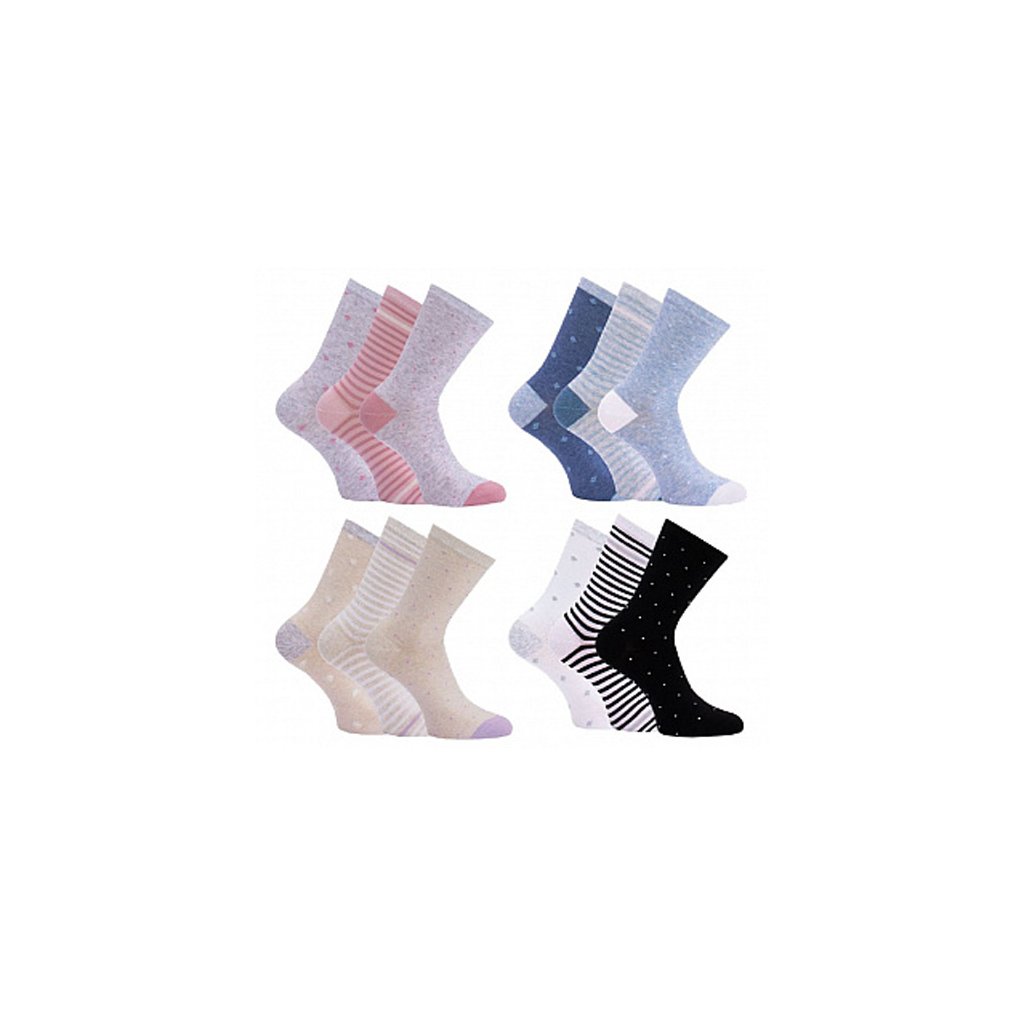 - dámské klasické melírované bavlněné ponožky s jemnými vzory / 3 pár