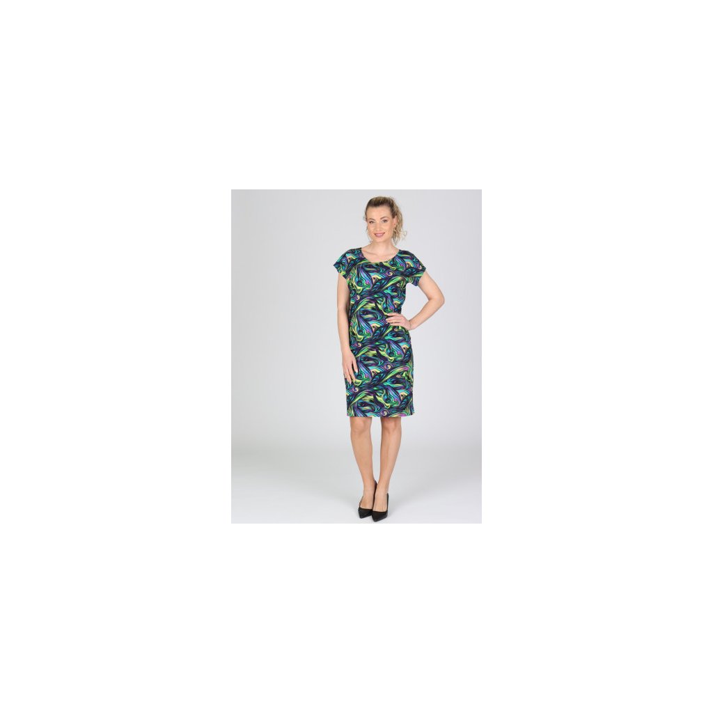 Dámské šaty mají mírně projmutý střih s kulatým výstřihem. Díky elastanu jsou tvarově stabilní.
