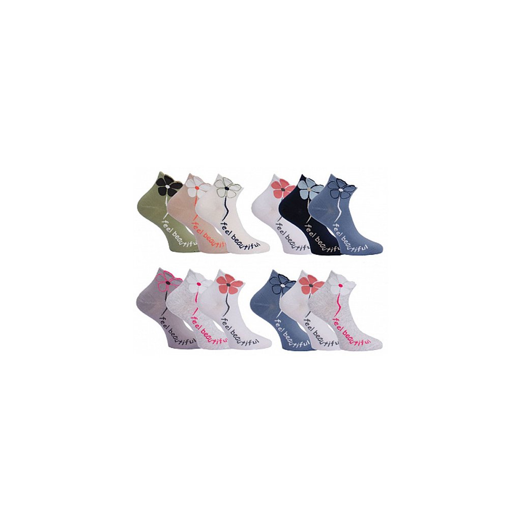 - dámské letní ponožky ve střední výšce s květinovým motivem / 3 páry