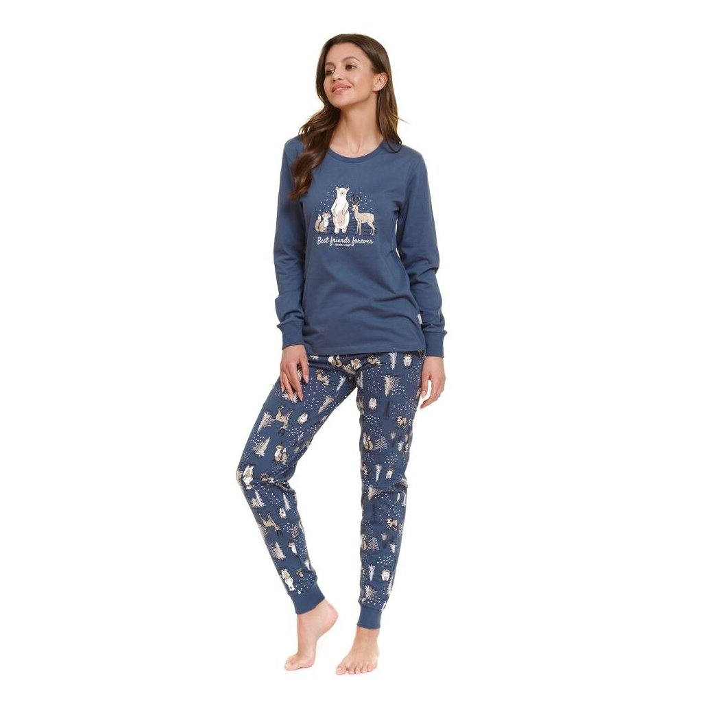 Dámské pyžamo Best Friends s lesními zvířátky modré