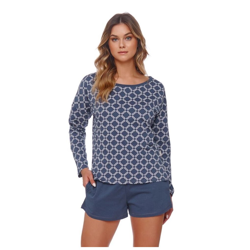 Modré dámské pyžamo má komfortní střih, je bavlněné a má působivý potisk.Doplňkové parametry