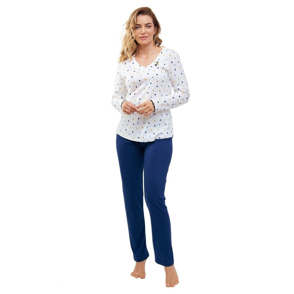 Kvalitní bavlněné dámské pyžamo s decentním vzorem barevných puntíčků na bílém pozadí.Doplňkové parametry
