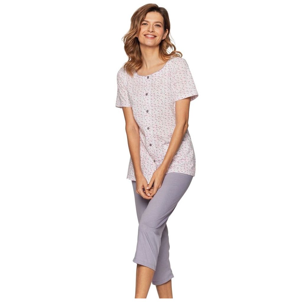 Elegantní dámské pyžamo Petra má propínací vršek a 3/4 kalhoty. Je vyrobené z luxusní bavlny single jersey.Doplňkové parametry