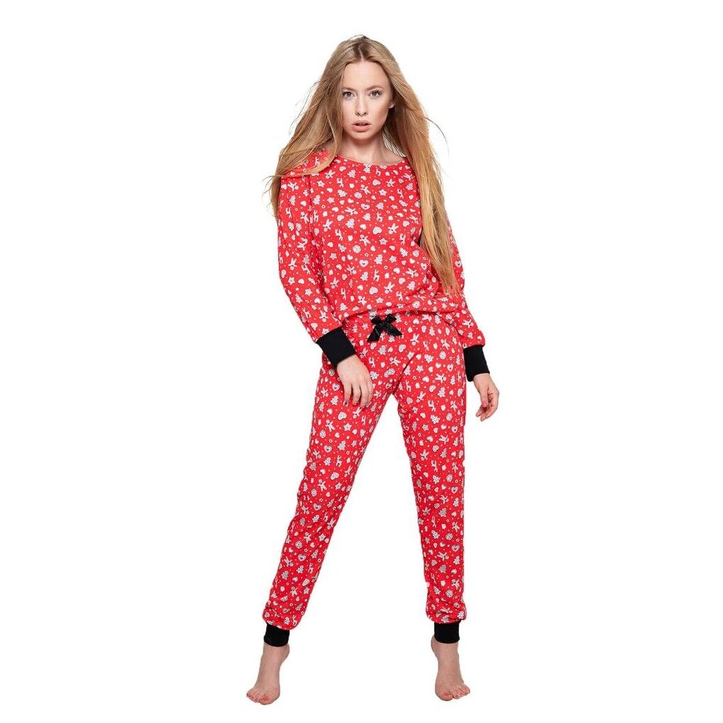 Dámské bavlněné pyžamo Sue má krásný vánoční vzor a červenou barvu.Doplňkové parametry
