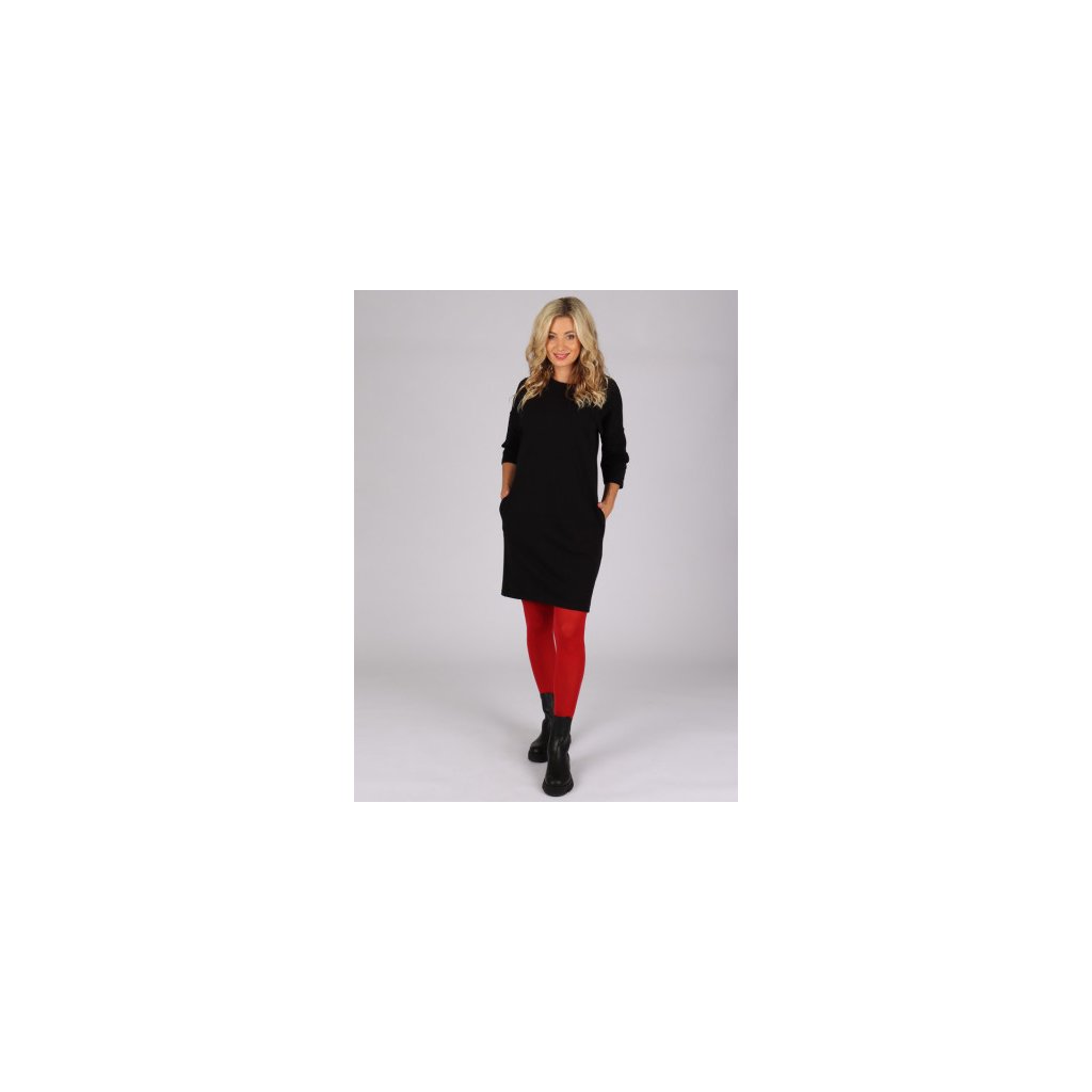Šaty jsou ušity z příjemného bavlněného úpletu s elastanem. Mají decentní kulatý výstřih, oblíbené 3/4 rukávy a 2 boční kapsy.