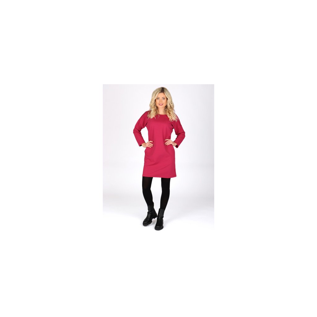 Šaty jsou ušity z příjemného bavlněného úpletu s elastanem. Mají decentní kulatý výstřih, dlouhé rukávy a 2 boční kapsy.