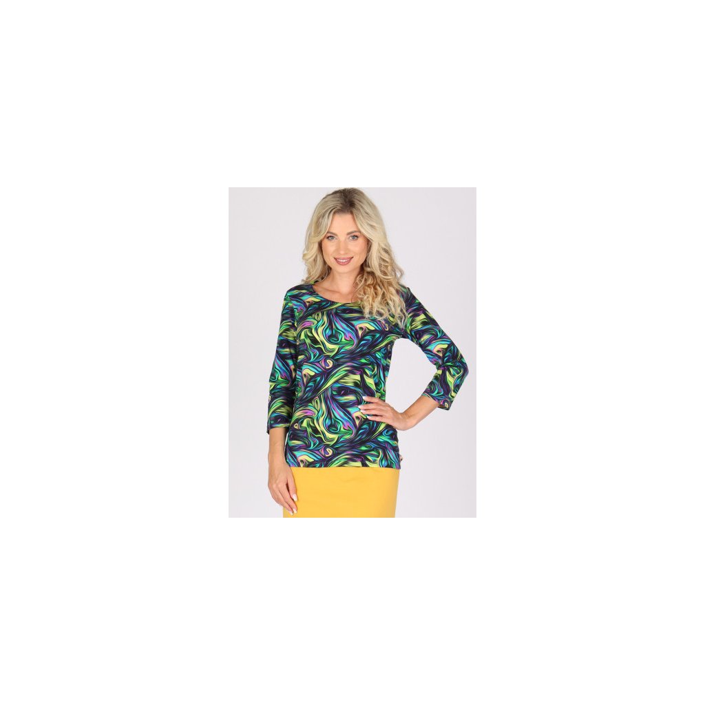 Pohodlné dámské tričko s originálním potiskem, díky kterému budete nepřehlédnutelná. Tričko má kulatý výstřih a 3/4 rukáv. Oblečte k němu sukni či kalhoty a budete vždy elegantní.