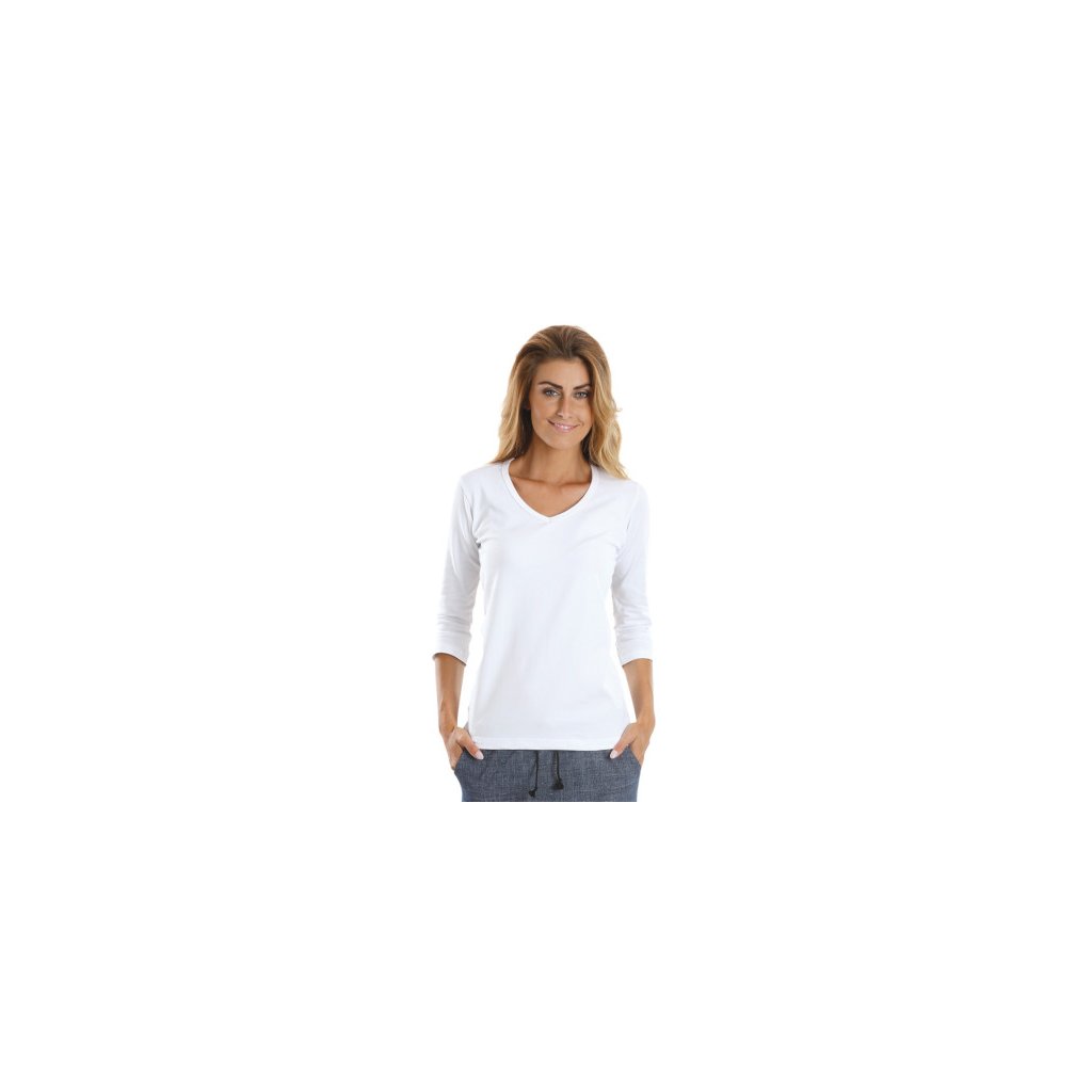 Klasické a nadčasové bílé dámské triko s 3/4 rukávem a výstřihem do V, které by Vám nemělo chybět v šatníku! Mírně projmutý střih, příjemná bavlna s podílem elastanu Vám dopřeje komfort při nošení.