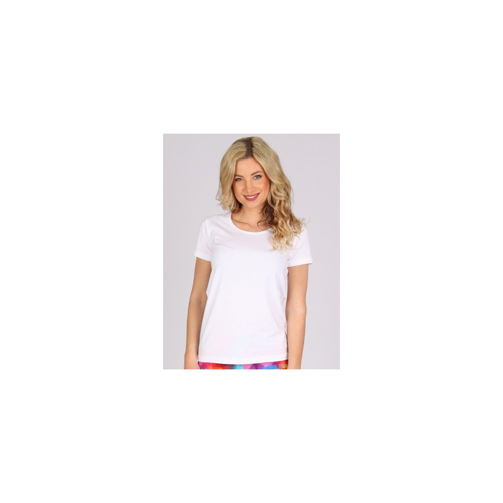 Střih s kulatým výstřihem, krátkými rukávy a klasickým dámským tvarem sluší každé postavě. Příměs elastanu zajišťuje, že tričko perfektně sedí a zachovává si svůj tvar i po častém praní.