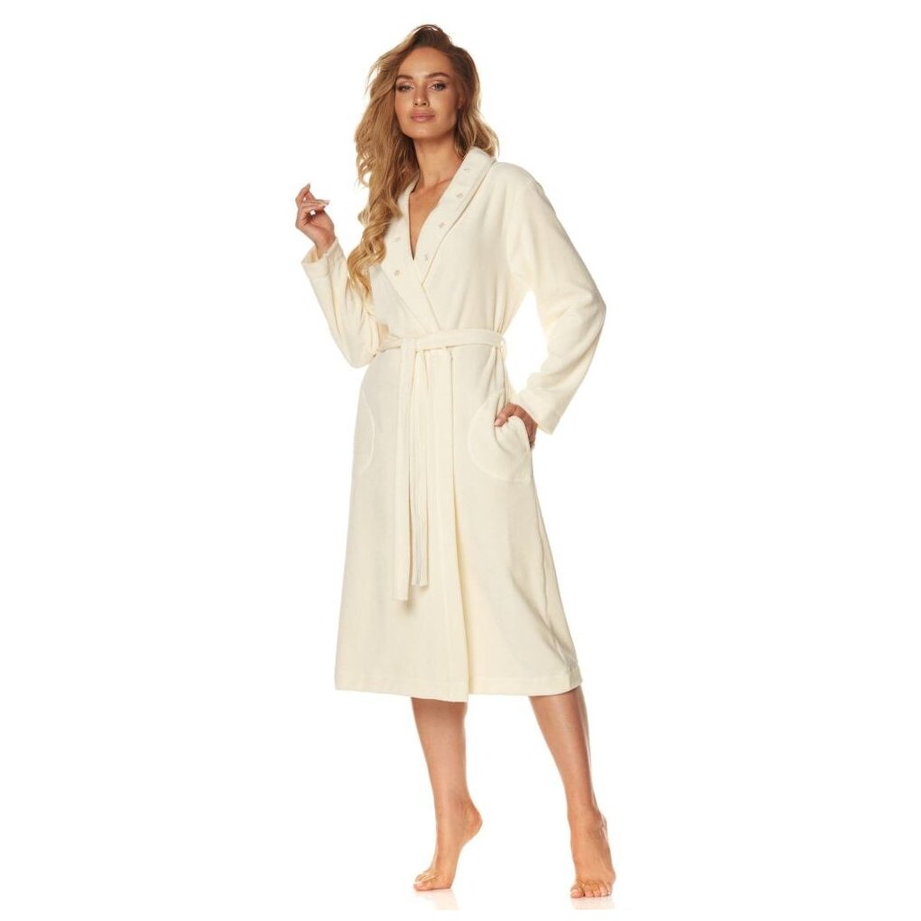 Příjemný dámský župan je zavinovací, má vanilkovou barvu a elegantní nášivky hvězdiček na límci.Doplňkové parametry