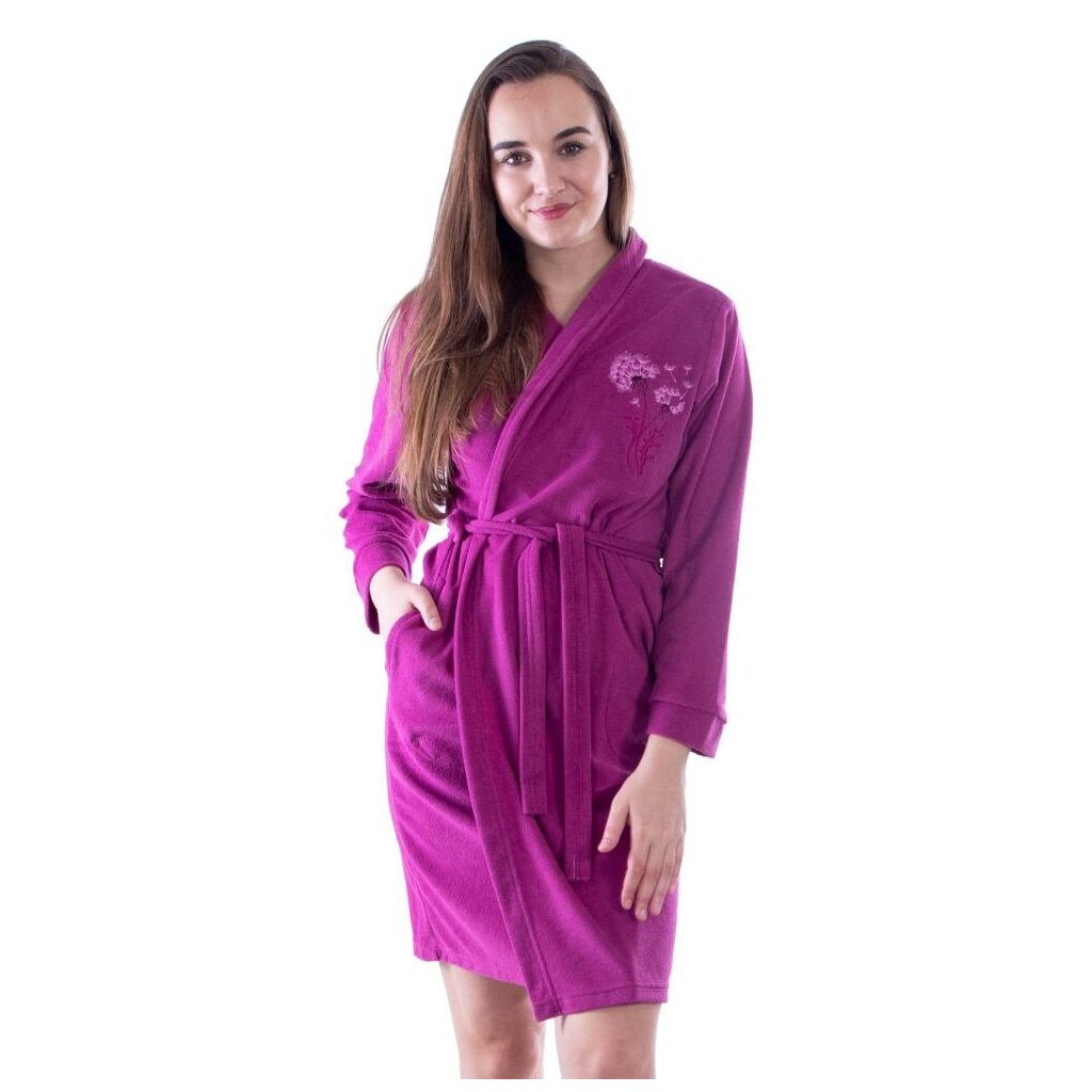 Fialový dámský župan z bavlněného froté.