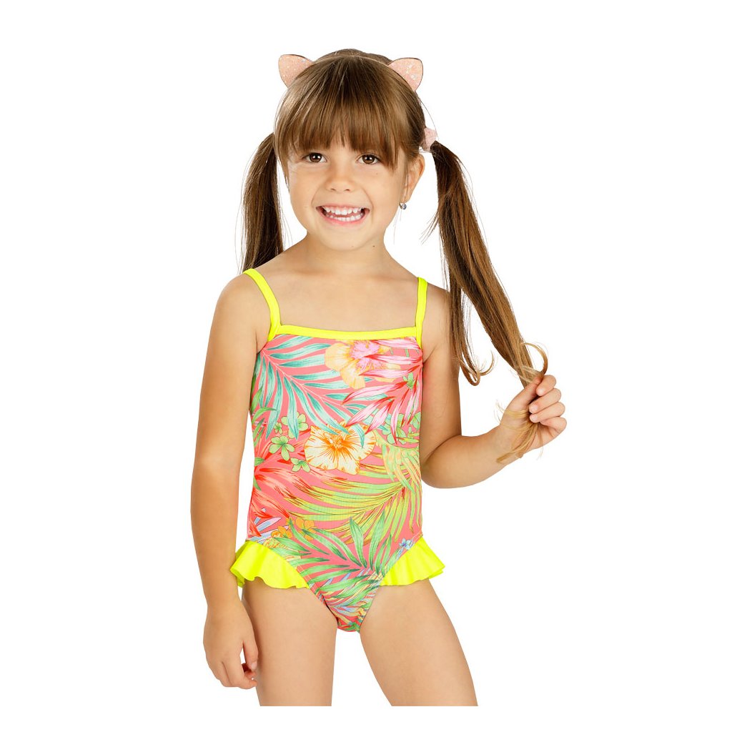 Zapínání na zadním díle. Ramínka na zkracovač. Střih: DJ14 90% Polyamid + 10% Elastan 82% Polyester + 18% Elastan Tisk + reflexní žlutá 98, 104, 110, 116, 122, 128Doplňkové parametry