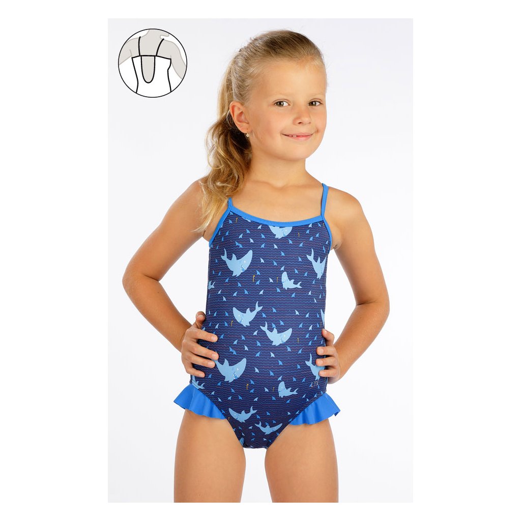 Zapínání na zadním díle. Ramínka na zkracovač. DJ14 80% Recyklovaný Polyester + 20% Elastan/ 80% Polyamid + 20% Elastan Tisk + modrá 98, 104, 110, 116, 122, 128, 134Doplňkové parametry