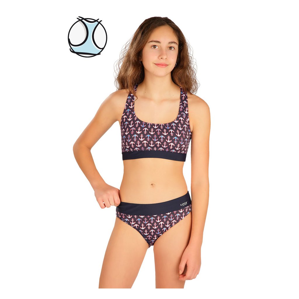 Průramky na zadním díle více vykrojené. Střih: DP30 80% Polyamid + 20% Elastan Tisk + tmavě modrá 134, 140, 146, 152, 158, 164Doplňkové parametry