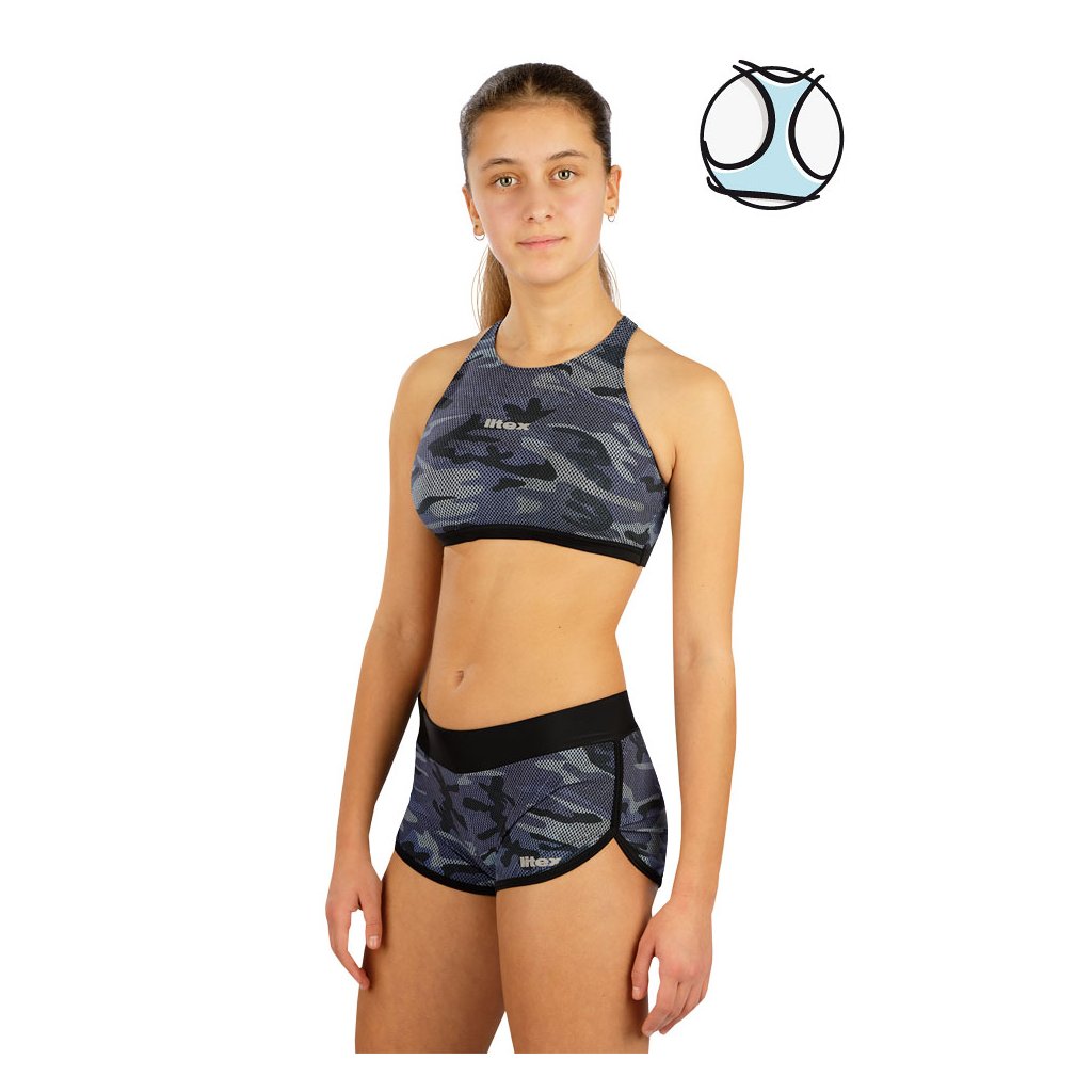 Průramky na zadním díle více vykrojené. Střih: DP37 72% Polyamid + 28% Elastan/ Lycra Tisk + černá 134, 140, 146, 152, 158, 164Doplňkové parametry