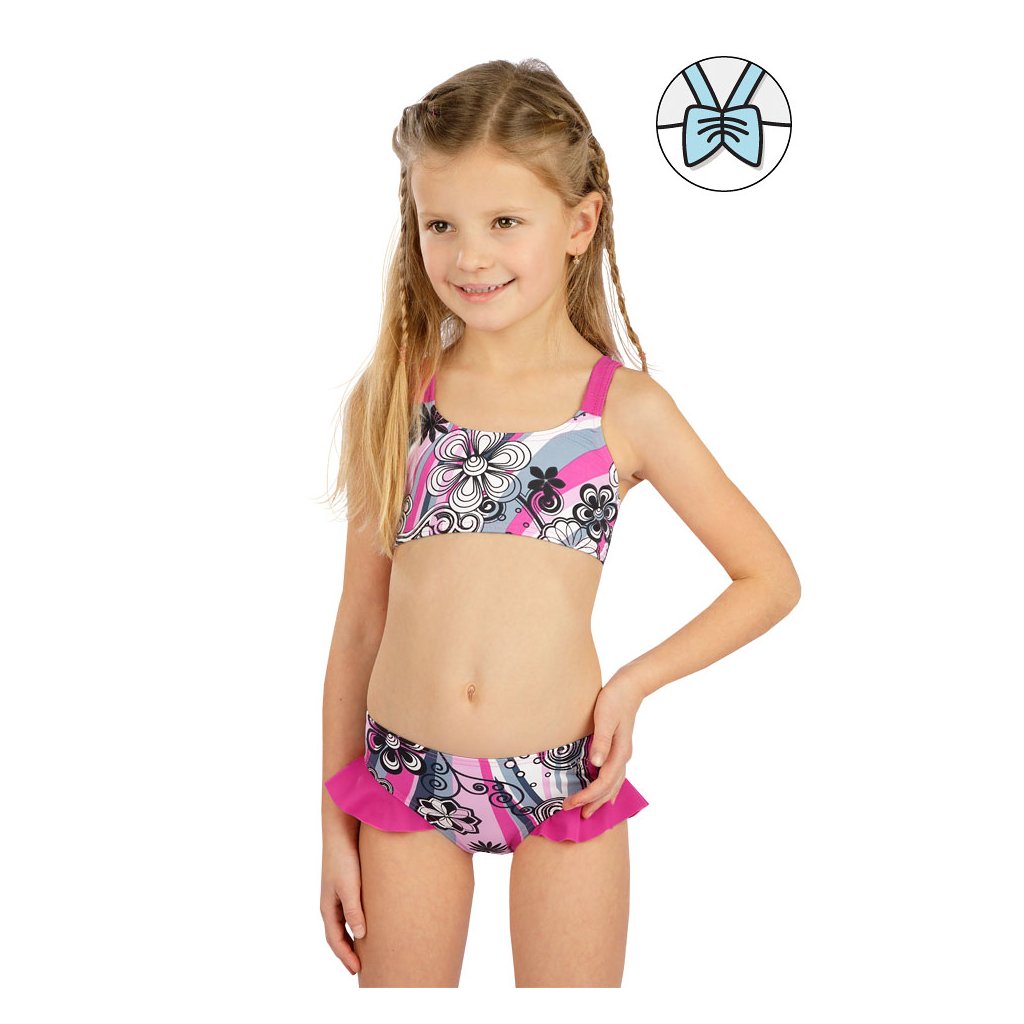 Mašle na zadním díle. Střih: DP36 82% Polyamid + 18% Elastan Tisk + růžová 110, 116, 122, 128Doplňkové parametry