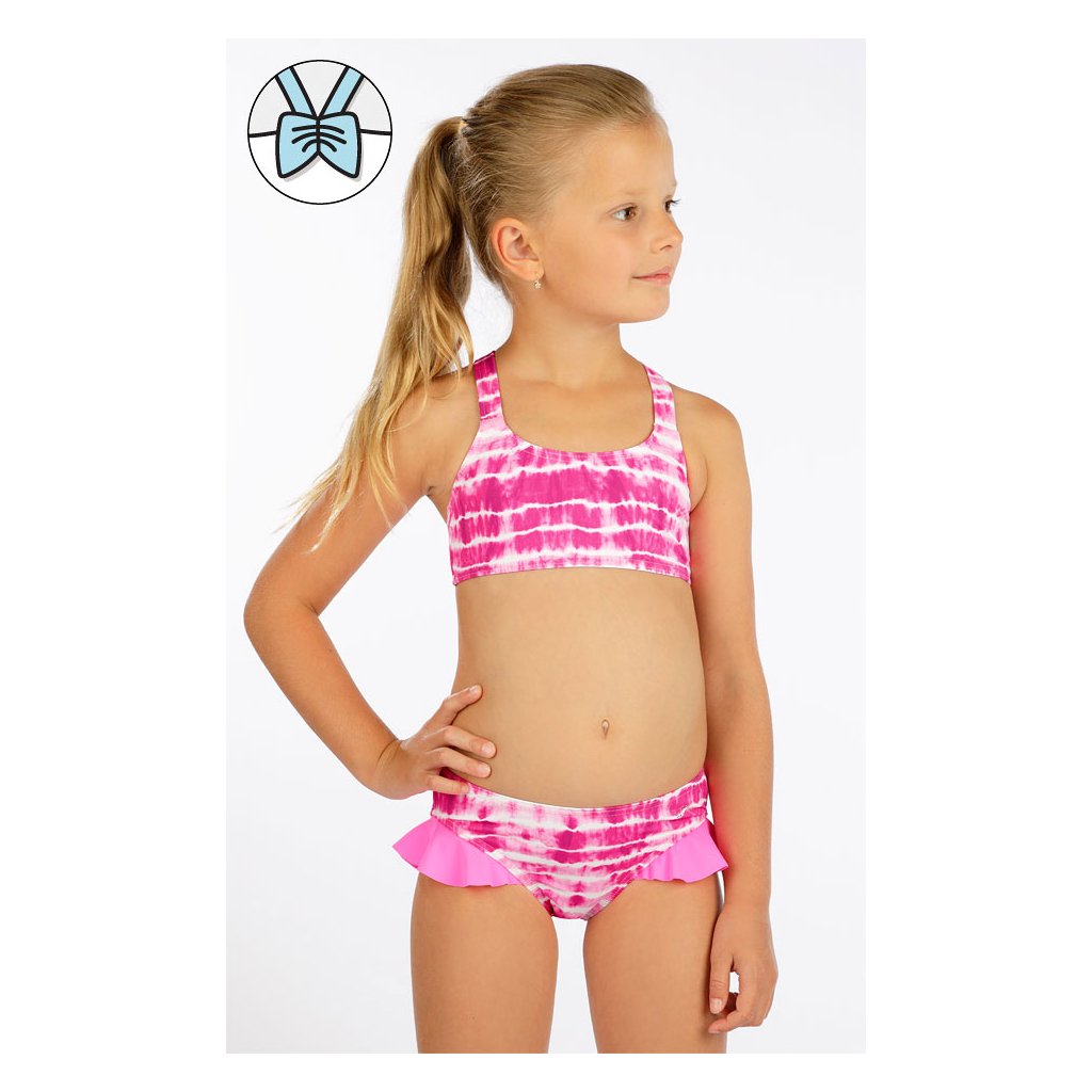 Ramínka. Ozdobná mašle na zadním díle. Střih: DP36 80% Polyamid + 20% Elastan Tisk + 333 neon růžová 104, 110, 116, 122, 128Doplňkové parametry