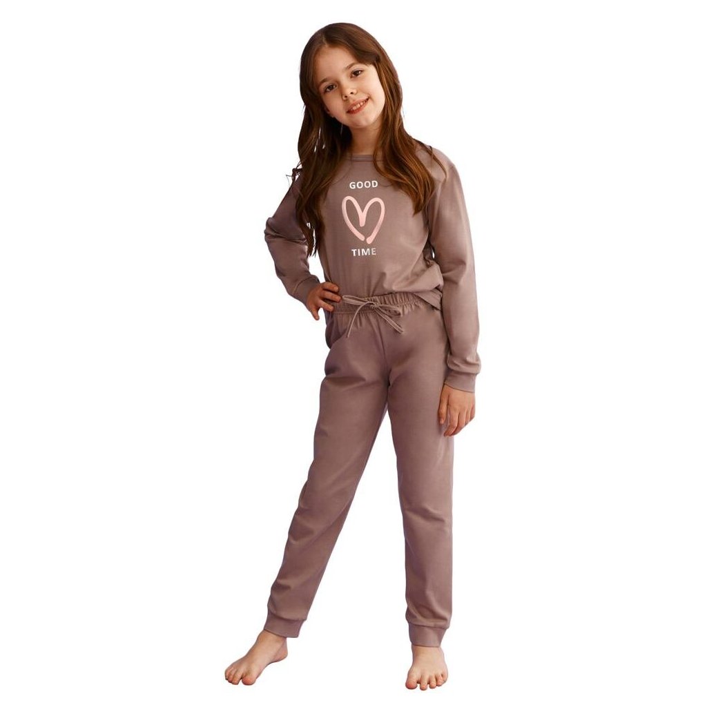 Dívčí pyžamo Maya hnědé se srdíčkem