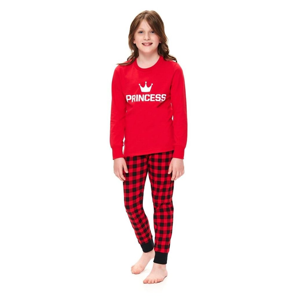 Kvalitní dívčí pyžamo z prodyšné bavlny s potiskem a károvanými kalhotami.