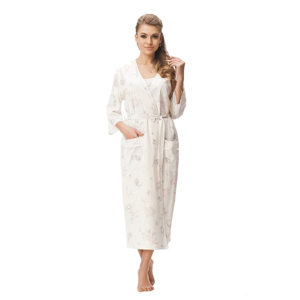 Lehký dámský bavlněný župan ve smetanové barvě se vzorem.Doplňkové parametry