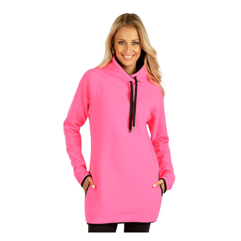 Překřížený stoják s průchodkami a tkanicí na stažení se stříbrnými koncovkami. Praktické boční kapsy. Efektivní pružné kontrastní lemování. Rychleschnoucí materiál s výbornými termoizolačními vlastnostmi, který nestárne a nežmolkuje. Pružnost oběma směry zaručuje dokonalou volnost pohybu. Vhodný jako druhá vrstva oblečení. Fleece velmi vysoké kvality. Délka mikiny cca 75 cm. 95% Polyester Fleece + 5% Elastan 311 reflexní růžová + černá S, M, LDoplňkové parametry