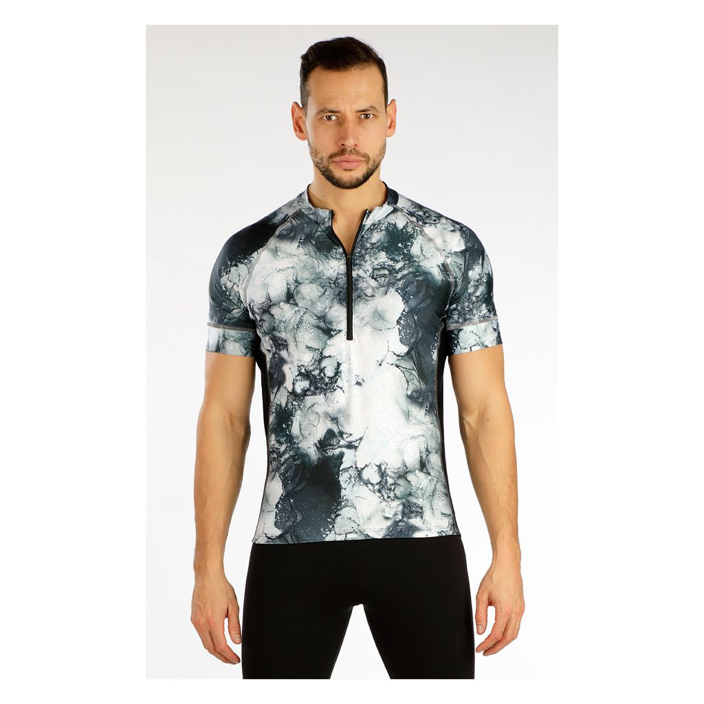 Pánské cyklo triko se zipem u krku a kapsou na zadním díle. Kombinace potisku s černou. Reflexní ploché švy a prvky pro lepší viditelnost a bezpečnost. V délce trika protiskluzová guma. Materiál je pružný, rychleschnoucí a poskytuje maximální komfort při nošení. 80% Polyester + 20% Elastan/ 80% Polyamid + 20% Elastan/ Lycra tisk + černá M, L, XLDoplňkové parametry