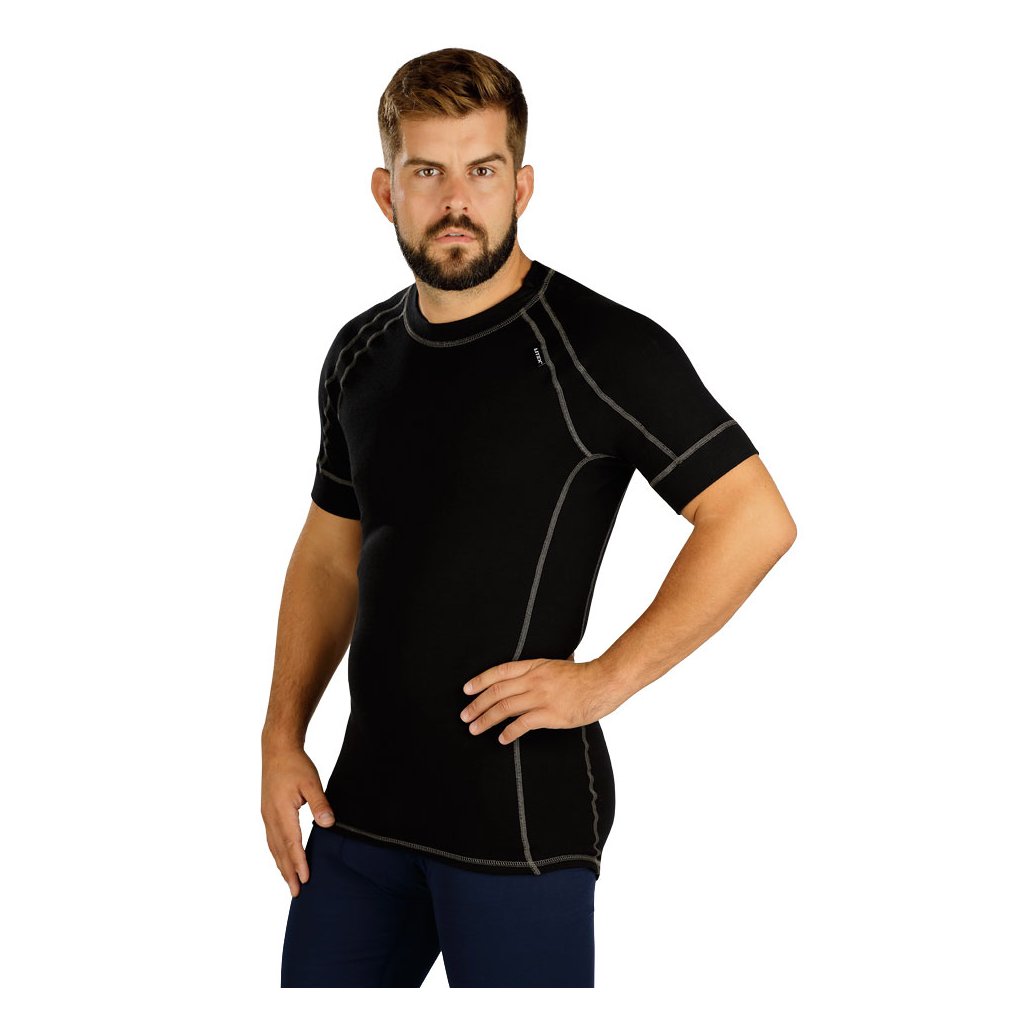 Krátký rukáv. Kulatý výstřih. Delší zadní díl. Ploché švy. 50% Modal + 50% Polypropylen 901 černá M, L, XL, XXLDoplňkové parametry