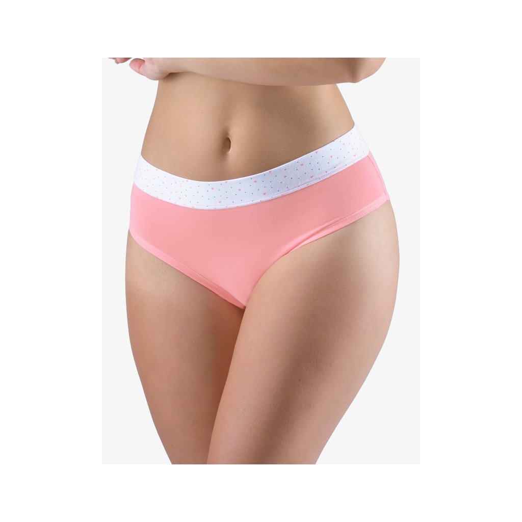 kalhotky klasické, širší bok, šité, s potiskem značky GINA, kód 10276. Barva: starorůžová bílá, Velikost: 50/52, Složení: 92% Bavlna 8% ElastanKalhotky klasického střihu se širším pasovým lemem, dámské šité prádlo. Pasový kraj je začištěný širším lemem ze stejného materiálu, zdobí ho drobný vzor se srdíčky. Nohavičky jsou začištěné úzkým lemem ze stejného materiálu. Materiál je vyroben z bavlny, která je doplněna elastanem. Úplet je vhodný pro všechny, kteří hledají přírodní materiály. Elastan přidává materiálu pružnost a zlepšuje jeho tvarovou stálost. Prádlo z tohoto materiálu je vhodné pro každodenní nošení.Kolekce Disco 18 přináší trendové barvy pro nadcházející sezónu.. Kolekce: Disco XVIIIDoplňkové parametry