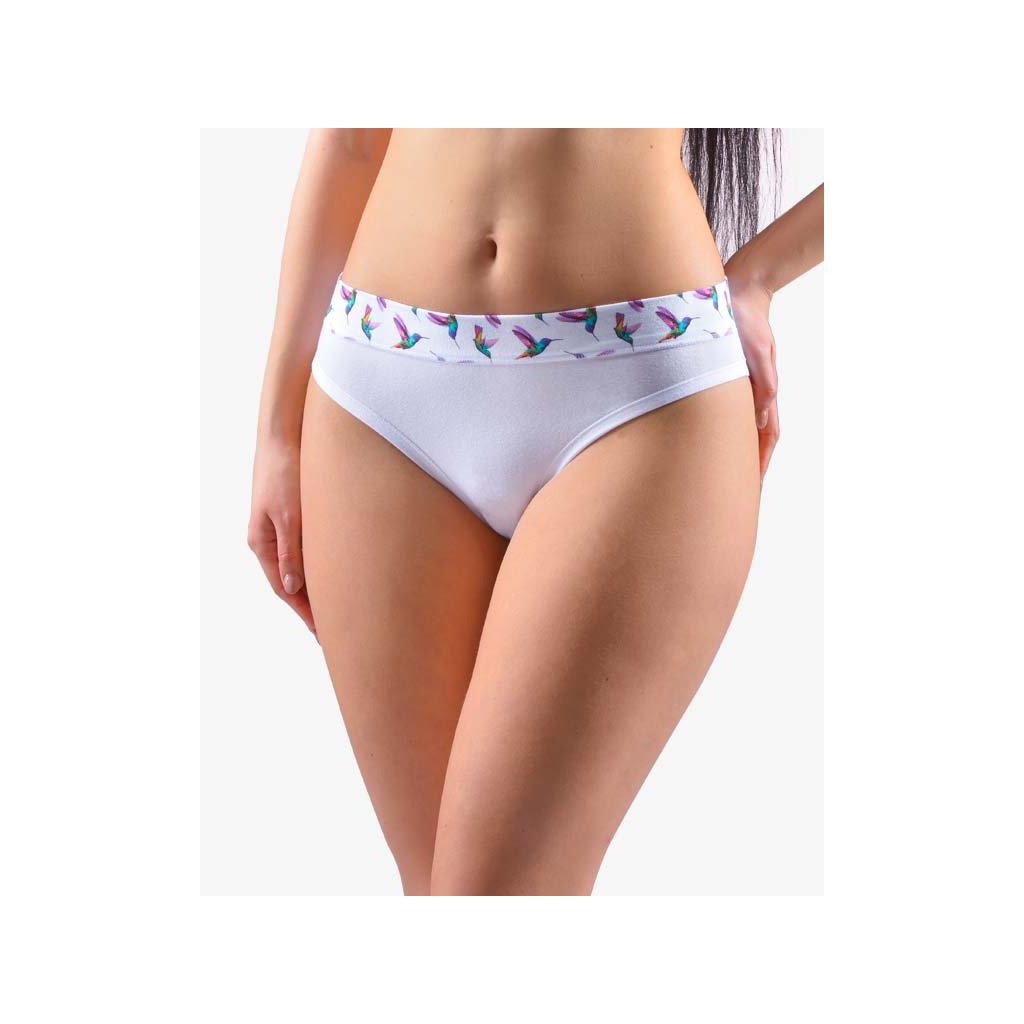 kalhotky klasické s úzkým bokem, úzký bok, šité, s potiskem značky GINA, kód 10274. Barva: bílá fialová, Velikost: 42/44, Složení: 92% Bavlna 8% ElastanKalhotky klasického střihu se širším pasovým lemem, dámské šité prádlo. Pasový kraj je začištěný širším lemem ze stejného materiálu. Nohavičky jsou začištěné úzkým lemem ze stejného materiálu. Pasový lem je potištěný. Přední a zadní díl a lemy nohaviček jsou jednobarevné.Materiál je vyroben z bavlny, která je doplněna elastanem. Úplet je vhodný pro všechny, kteří hledají přírodní materiály. Elastan přidává materiálu pružnost a zlepšuje jeho tvarovou stálost. Prádlo z tohoto materiálu je vhodné pro každodenní nošení.Kolekce Disco XVII přináší svěží barvy do vašeho šatníku.. Kolekce: Disco XVIIDoplňkové parametry