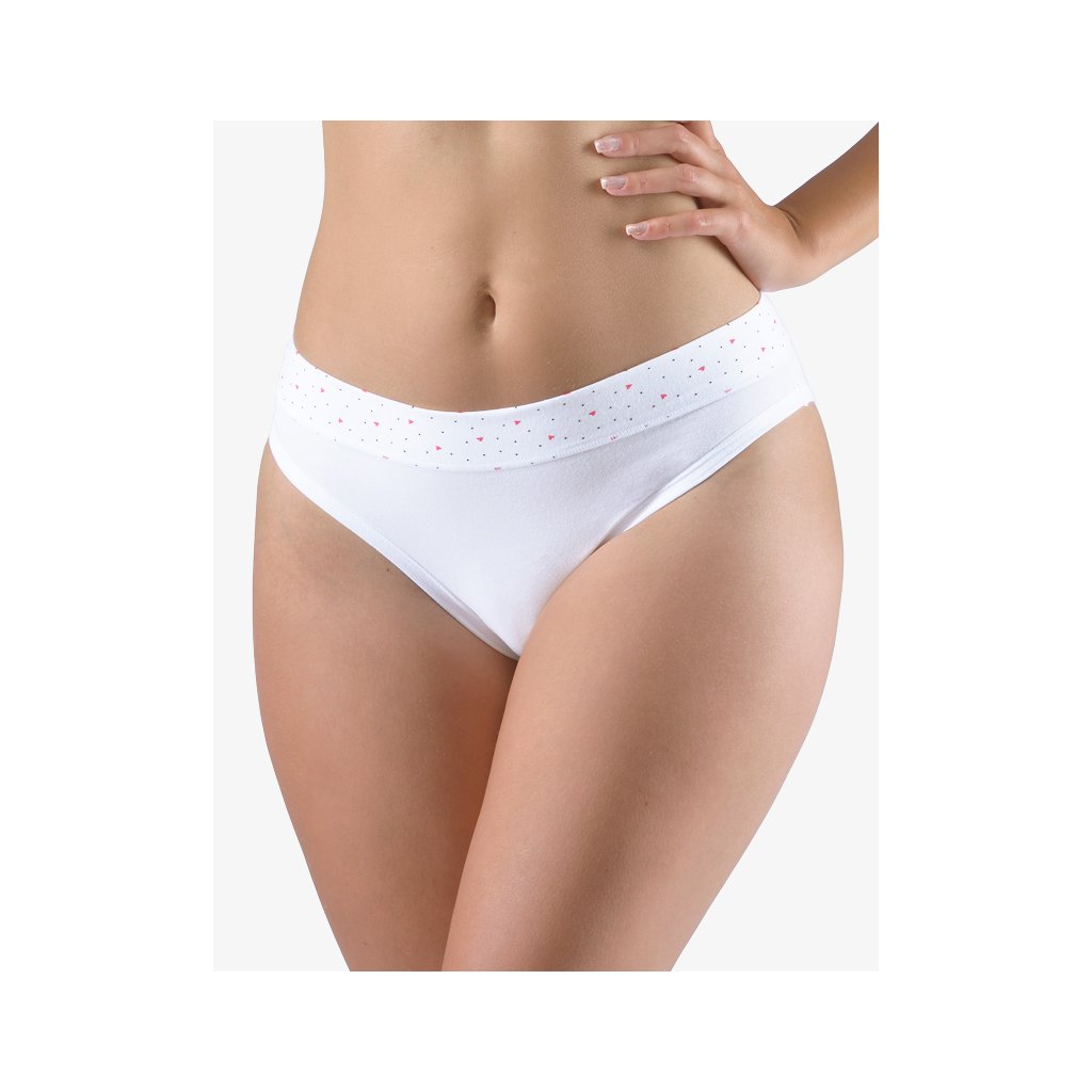 kalhotky klasické s úzkým bokem, úzký bok, šité, s potiskem značky GINA, kód 10280. Barva: bílá purpurová, Velikost: 38/40, Složení: 92% Bavlna 8% ElastanKalhotky klasického střihu s úzkým bokem a širším pasovým lemem, dámské šité prádlo. Pasový kraj je začištěný širším lemem ze stejného materiálu. Zdobí jej potisk s drobnými srdíčky. Nohavičky jsou začištěné úzkým lemem ze stejného materiálu.Materiál je vyroben z bavlny, která je doplněna elastanem. Úplet je vhodný pro všechny, kteří hledají přírodní materiály. Elastan přidává materiálu pružnost a zlepšuje jeho tvarovou stálost. Prádlo z tohoto materiálu je vhodné pro každodenní nošení.Kolekce Disco 18 přináší trendové barvy pro nadcházející sezónu.. Kolekce: Disco XVIIIDoplňkové parametry