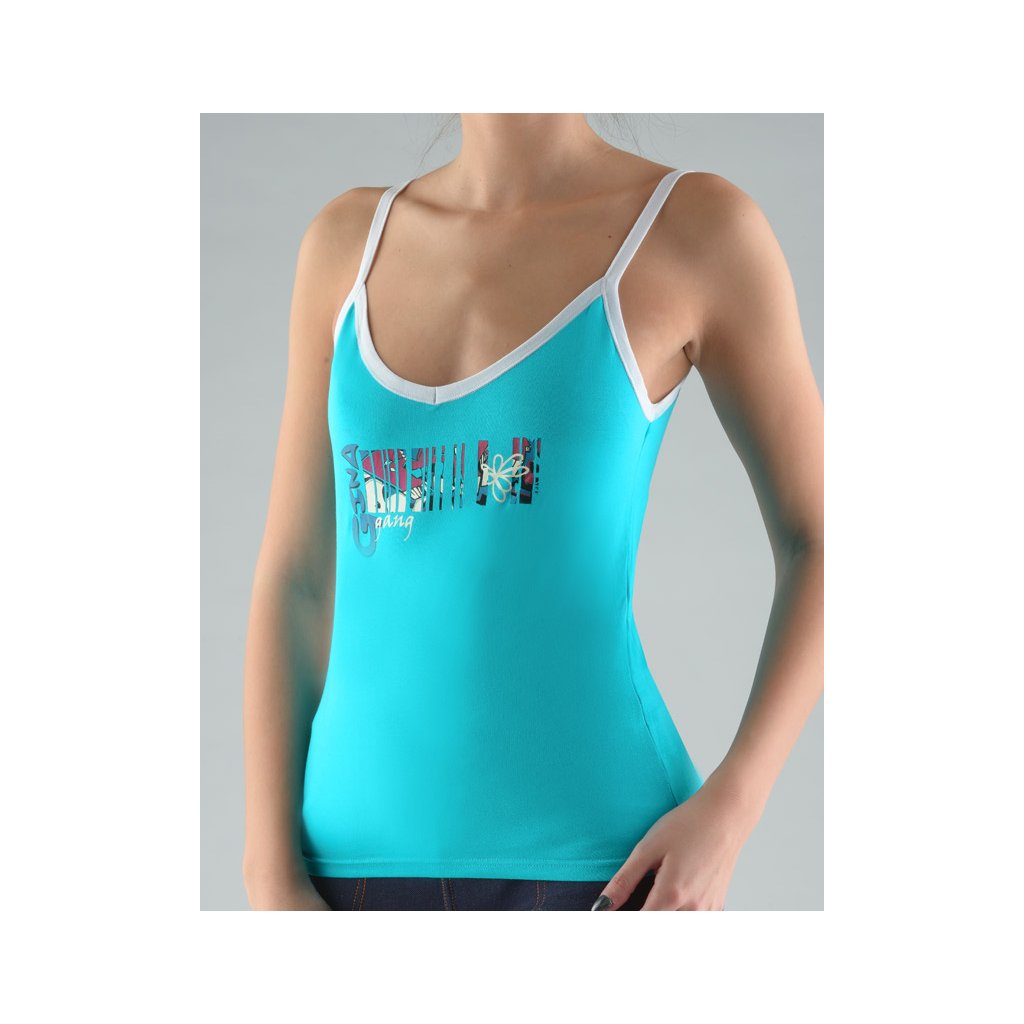 košilka, úzká ramínka, šité, s potiskem značky GINA, kód 18031. Barva: tm. tyrkysová , Velikost: 34/36, Složení: 92% Bavlna 8% ElastanKošilka s úzkými ramínky, dámské šité prádlo. Košilka je jednobarevná s kontrastními ramínky a lemem v průkrčníku. Na předním díle je větší solitér.Materiál je vyroben z bavlny, která je doplněna elastanem. Úplet je vhodný pro všechny, kteří hledají přírodní materiály. Elastan přidává materiálu pružnost a zlepšuje jeho tvarovou stálost. Prádlo z tohoto materiálu je vhodné pro každodenní nošení.Kolekce Disco 5 přináší aktuální trendové barvy pro nadcházející období.. Kolekce: Disco VDoplňkové parametry