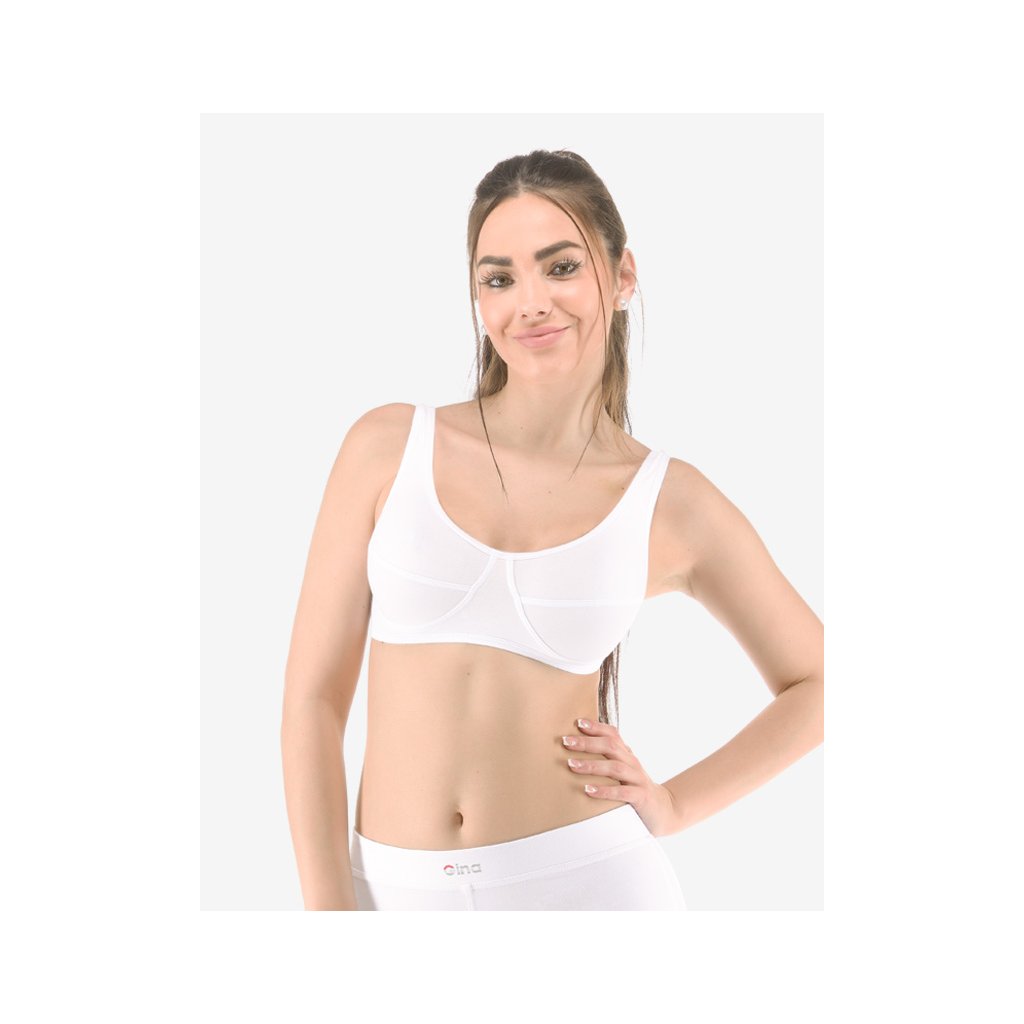 GINA dámské podprsenka sportovní na zapínání, bez kostice, šité, jednobarevné 97001P