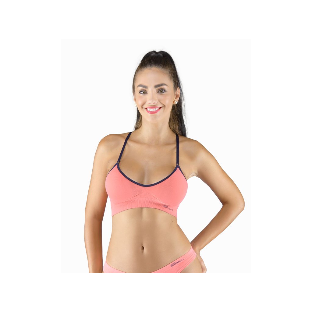 podprsenka sportovní s vycpávkami, bez kostice, bezešvé, jednobarevné značky GINA, kód 07020. Barva: lékořice tomato, Velikost: L/XL, Složení: 80% Viskóza ( Bambus ) 16% Polyamid 4% ElastanPodprsenka bez kostic s vyjímatelnými vycpávkami a nastavitelnými ramínky, dámské bezešvé sportovní prádlo. Dolní kraj je zesílený a zapravený bezešvým způsobem. Horní kraj je zapravený lemovkou. Přední díl je dvojitý a mezi vnější a vnitřní část jsou vloženy lisované košíčky. Zadní díl je v celku. Ramínka jsou nastavitelná, na zadním díle jsou pomocí kroužku umístěna uprostřed. Podprsenka je jednobarevná. V záložce je vypletené logo.Materiál je vyroben z bambusového vlákna, které je doplněno elastanem. Úplet je velmi jemný a příjemný na nošení. Do každodenního prádla přináší luxusní hedvábný vzhled.Luxusní kolekce bezešvého prádla ECO Bamboo má nejvyšší podíl bambusového vlákna. V této kolekci jsme se zaměřili na ekologické zpracování jak samotného vlákna, tak postupů při barvení a konečné úpravě textilie. Prádlo je v obalu šetrném k přírodě.. Kolekce: Eco BambooDoplňkové parametry
