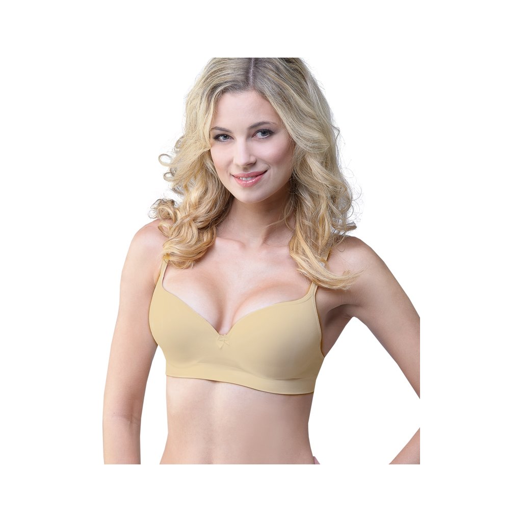 podprsenka vyztužená, vyztužené, bezešvé značky GINA, kód 07017. Barva: tělová , Velikost: 75B, Složení: 90% Viskóza ( Bambus ) 5% Polyamid 5% ElastanPodprsenka s kosticemi a lisovanými košíčky, dámské bezešvé prádlo. Vnější část podprsenky je z bambusového materiálu, košíčky jsou z polyuretanové pěny, která je uvnitř potažena bavlněným materiálem. Ramínka jsou nastavitelná. Podprsenka je jednobarevná. Zapínání je třířadé na 2 háčky. Na předním díle je mašlička. Podprsenka je vhodná pro každodenní běžné nošení.Materiál je vyroben z bambusového vlákna, které je doplněno elastanem. Úplet je velmi jemný a příjemný na nošení. Do každodenního prádla přináší luxusní hedvábný vzhled.Luxusní kolekce bezešvého prádla ECO Bamboo má nejvyšší podíl bambusového vlákna. V této kolekci jsme se zaměřili na ekologické zpracování jak samotného vlákna, tak postupů při barvení a konečné úpravě textilie. Prádlo je baleno v ekologických sáčcích a doplněno krabičkou bez laminace.. Kolekce: Eco BambooDoplňkové parametry