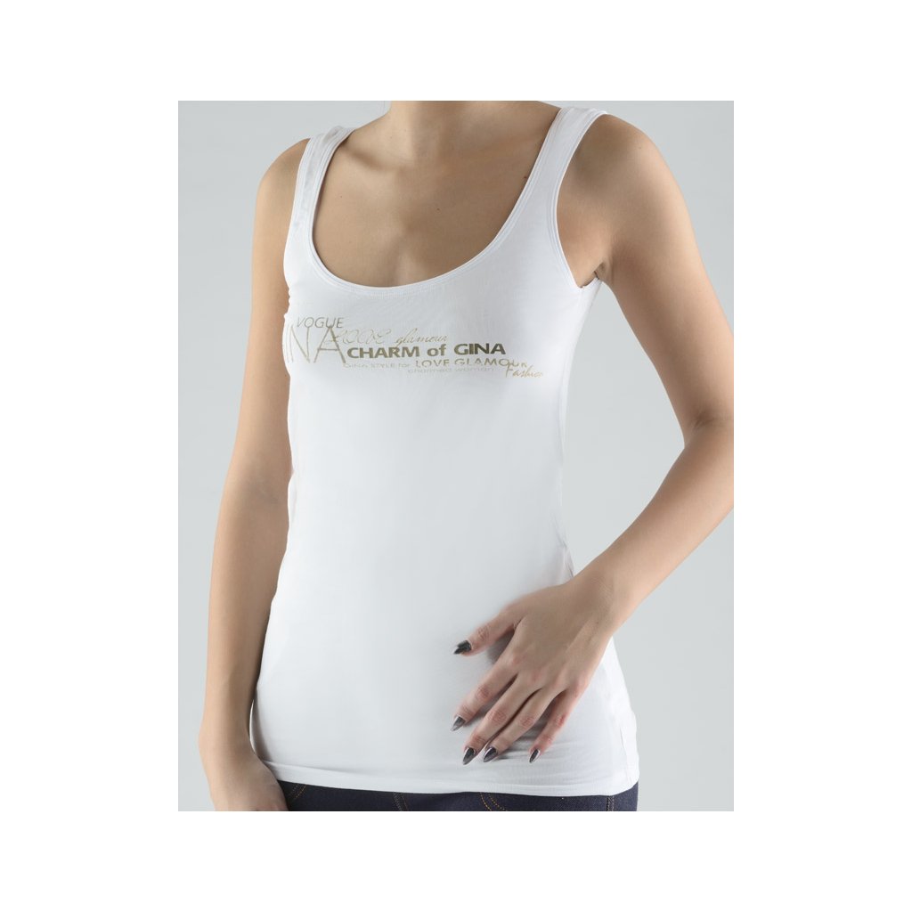 tílko, širší ramínka, šité, s potiskem značky GINA, kód 18040. Barva: bílá , Velikost: 42/44, Složení: 47,5% Viskóza ( Bambus ) 47,5% Bavlna 5% ElastanTílko se širšími ramínky, dámské šité prádlo. Průramky a průkrčník jsou začištěny lemovacími proužky. Tílko je jednobarevné. Na předním díle je větší solitér.Materiál je vyroben z bambusového vlákna, které je doplněno bavlnou a elastanem. Úplet je velmi jemný a příjemný na nošení. Do každodenního prádla přináší luxusní hedvábný vzhled. Bavlna dává materiál měkčí a plnější omak.Kolekce Charmed a Charmed II. přináší příjemný a jemný materiál do každodenního prádla. Kolekce kombinuje jak jednobarevné čisté modely, tak modely s decentním solitérem.. Kolekce: Charmed IDoplňkové parametry