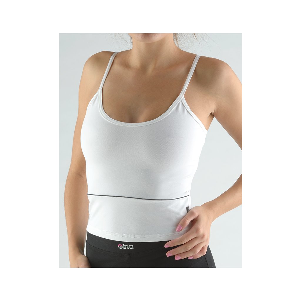 tílko, širší ramínka, šité značky GINA, kód 98001. Barva: melta bílá, Velikost: M, Složení: 90% Bavlna 10% Elastan ( Lycra )Košilka do pasu s úzkými ramínky, dámské šité sportovní prádlo. Průramky a průkrčník jsou začištěny lemovacími proužky, které přechází do ramínek. Přední díl je členěný pod prsy. Košilka je jednobarevná s kontrastní paspulí v členícím švu. V bočním kraji je všité logo.Materiál je vyroben z bavlny, která je doplněna Lycrou. Úplet je vhodný pro všechny, kteří hledají přírodní materiály. Lycra přidává materiálu pružnost a zlepšuje jeho tvarovou stálost. Prádlo z tohoto materiálu je vhodné pro každodenní nošení..Doplňkové parametry