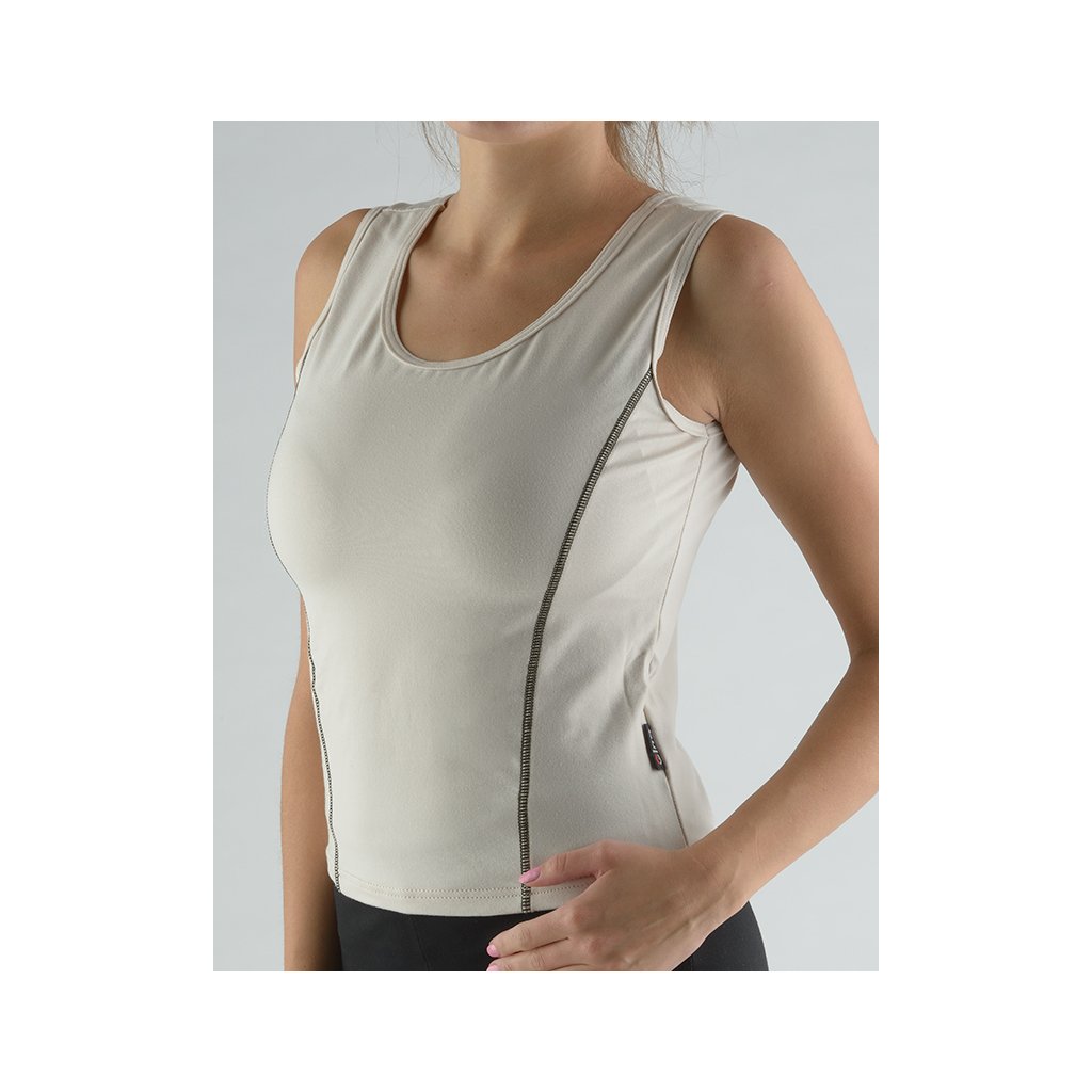 tílko, širší ramínka, šité značky GINA, kód 98021. Barva: lékořice písková, Velikost: M, Složení: 90% Bavlna 10% Elastan ( Lycra )Tílko do pasu se širšími ramínky, dámské šité sportovní prádlo. Průramky a průkrčník jsou začištěny lemovacími proužky. Tílko je jednobarevné s kontrastním prošitím na předním díle. V bočním kraji je všité logo.Materiál je vyroben z bavlny, která je doplněna Lycrou. Úplet je vhodný pro všechny, kteří hledají přírodní materiály. Lycra přidává materiálu pružnost a zlepšuje jeho tvarovou stálost. Prádlo z tohoto materiálu je vhodné pro každodenní nošení..Doplňkové parametry