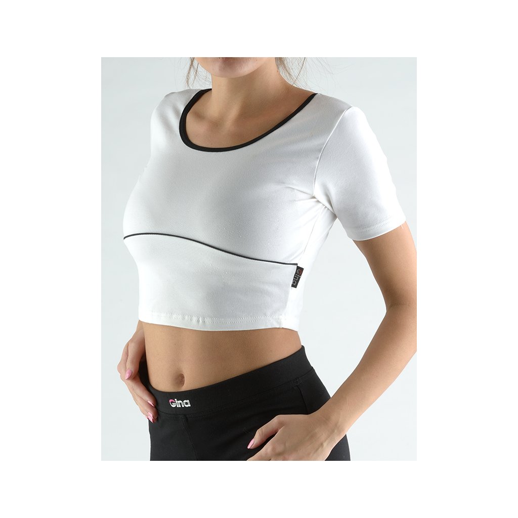 top tričko, krátký rukáv, šité značky GINA, kód 97009. Barva: bílá černá, Velikost: L, Složení: 90% Bavlna 10% Elastan ( Lycra )Krátké tričko pod prsa s krátkými rukávy, dámské šité sportovní prádlo. Výstřih je kulatý. Přední díl je členěný pod prsy. Tričko je jednobarevné s kontrastním lemováním a paspulí v členícím švu. V bočním kraji je všité logo.Materiál je vyroben z bavlny, která je doplněna Lycrou. Úplet je vhodný pro všechny, kteří hledají přírodní materiály. Lycra přidává materiálu pružnost a zlepšuje jeho tvarovou stálost. Prádlo z tohoto materiálu je vhodné pro každodenní nošení..Doplňkové parametry