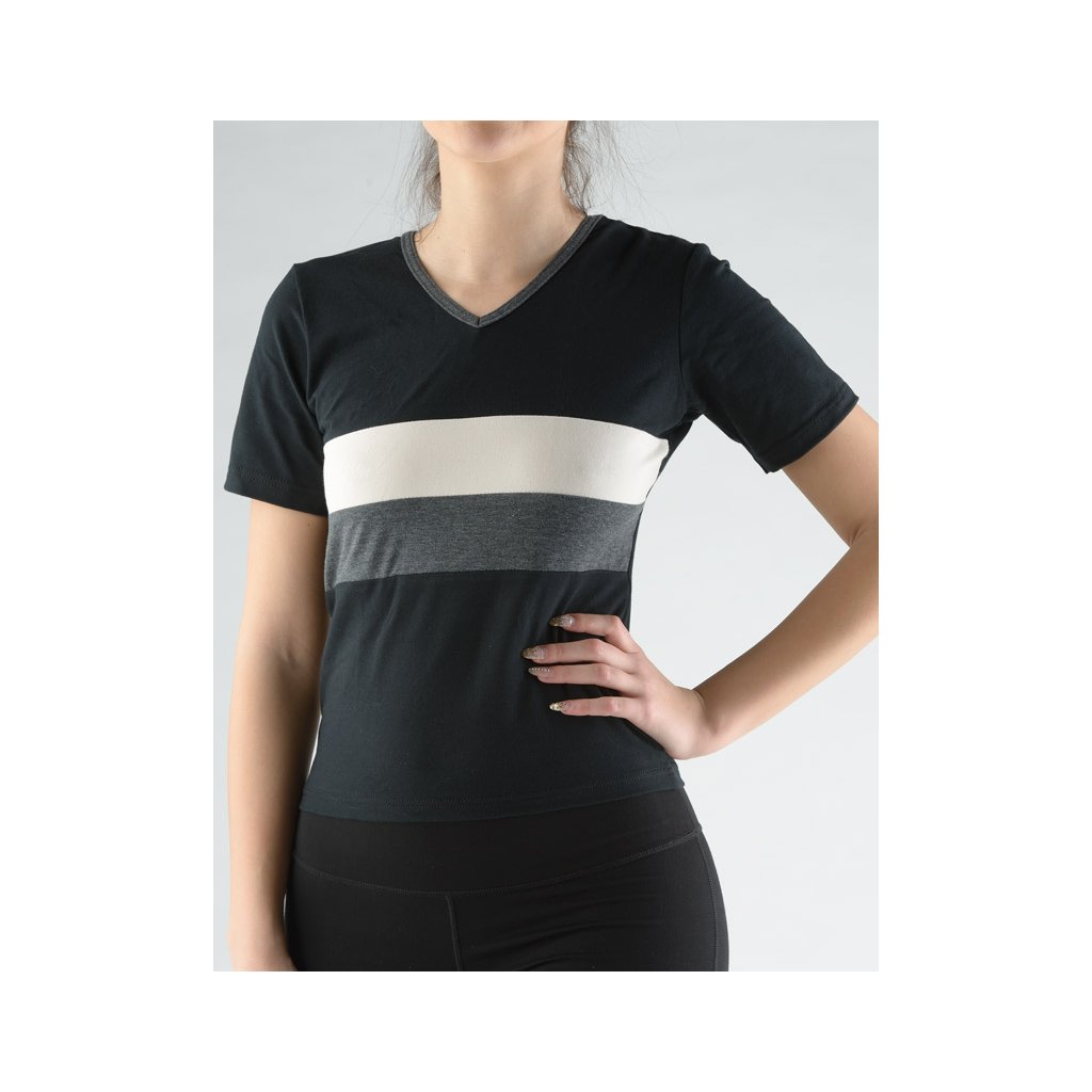 tričko s krátkým rukávem, krátký rukáv, šité značky GINA, kód 98069. Barva: černá tm. šedá, Velikost: S, Složení: 90% Bavlna 10% ElastanTričko do pasu s krátkým rukávem, dámské šité sportovní prádlo. Výstřih je do V. Tričko je členěné dvěma barevnými pruhy.Materiál je vyroben z bavlny, která je doplněna elastanem. Úplet je vhodný pro všechny, kteří hledají přírodní materiály. Elastan přidává materiálu pružnost a zlepšuje jeho tvarovou stálost. Prádlo z tohoto materiálu je vhodné pro každodenní nošení..Doplňkové parametry