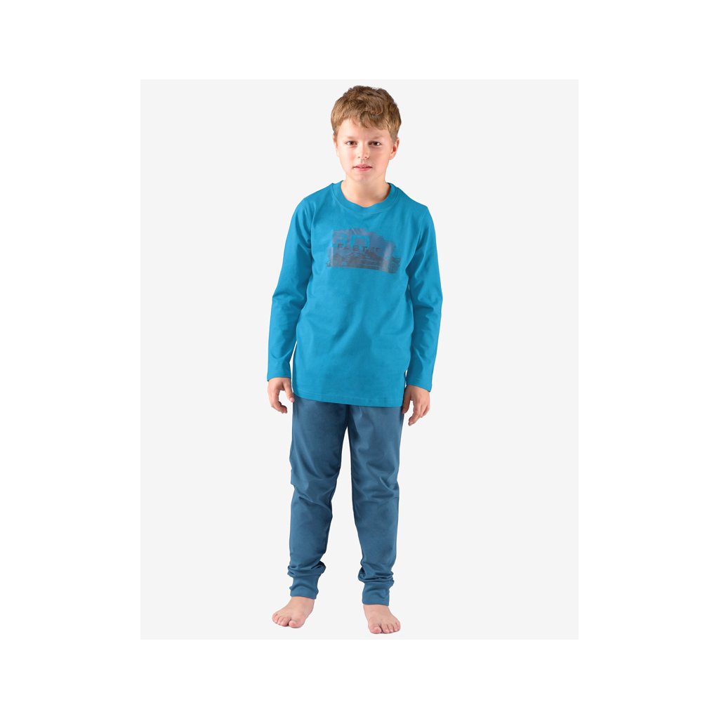 pyžamo dlouhé chlapecké, šité, s potiskem značky GINA, kód 69003. Barva: měsíc petrolejová, Velikost: 140/146, Složení: 100% BavlnaZákladem kvalitního spánku je vaše pohodlí, ke kterému vám pomůže i pohodlné noční prádlo. Chlapecké pyžamo s dlouhým rukávem má na hrudníku potisk, který nadchne nejen každého malého obdivovatele formulí a rychlých aut. Dlouhé jednobarevné kalhoty jsou zakončeny manžetami a v pase se dají stáhnout díky tkaničce. Bavlněný úplet je ideální volbou materiálu pro noční prádlo – spát se v něm bude doslova jako v bavlnce.. Kolekce: Pyžama 2022Doplňkové parametry