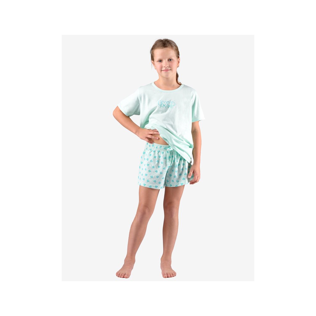 pyžamo krátké dívčí, šité, s potiskem značky GINA, kód 29008. Barva: aqua akvamarín, Velikost: 140/146, Složení: 100% BavlnaZákladem kvalitního spánku je vaše pohodlí, ke kterému vám pomůže i pohodlné noční prádlo. Naše dívčí pyžamo s krátkým rukávem a šortkami s potiskem potěší každou malou parádnici. Tričko má potisk na hrudníku, pyžamo je celé navržené v moderním designu a ušité ze 100% bavlněného úpletu, díky kterému se v něm bude spát doslova jako v bavlnce.. Kolekce: Pyžama 2022Doplňkové parametry