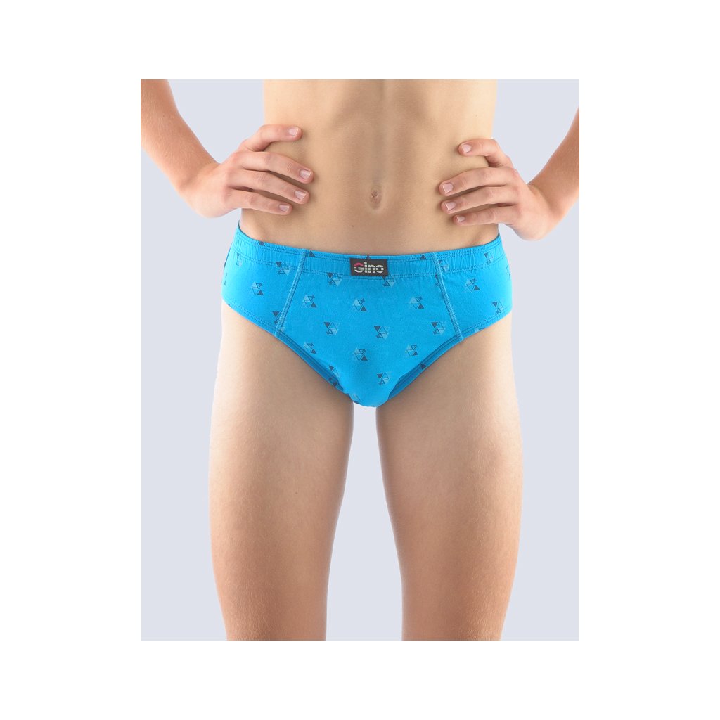 slipy chlapecké, širší bok, šité, s potiskem značky GINA, kód 61003. Barva: dunaj tm. tyrkysová, Velikost: 152/158, Složení: 92% Bavlna 8% ElastanSlipy se širším bokem, chlapecké šité prádlo. V pasovém kraji je zašitá širší pruženka. V nohavičkách je zašitá úzká pruženka. Slipy jsou potištěné výraznějším vzorem (trojúhelníky).Materiál je vyroben z bavlny, která je doplněna elastanem. Úplet je vhodný pro všechny, kteří hledají přírodní materiály. Elastan přidává materiálu pružnost a zlepšuje jeho tvarovou stálost. Prádlo z tohoto materiálu je vhodné pro každodenní nošení..Doplňkové parametry