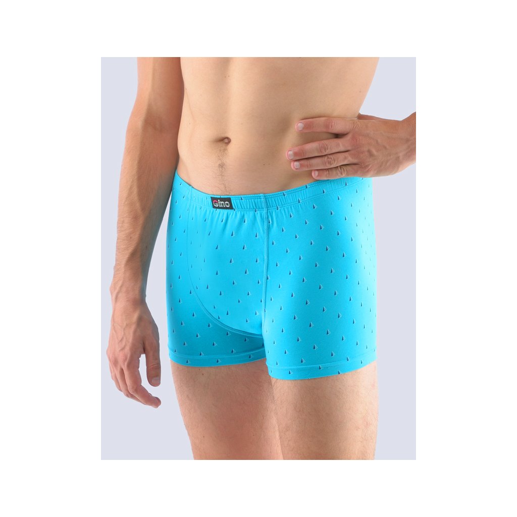 boxerky kratší nohavička, šité, s potiskem značky GINA, kód 73108. Barva: tyrkysová lékořice, Velikost: 50/52, Složení: 92% Bavlna 8% ElastanBoxerky s kratší nohavičkou, pánské šité prádlo. V pasovém kraji je zašitá širší pruženka. Nohavičky jsou začištěné podehnutím. Zadní díl je hladký. Boxerky jsou potištěné drobným vzorem (plachetnice).Materiál je vyroben z bavlny, která je doplněna elastanem. Úplet je vhodný pro všechny, kteří hledají přírodní materiály. Elastan přidává materiálu pružnost a zlepšuje jeho tvarovou stálost. Prádlo z tohoto materiálu je vhodné pro každodenní nošení..Doplňkové parametry